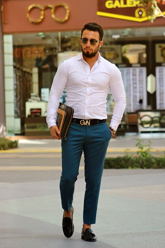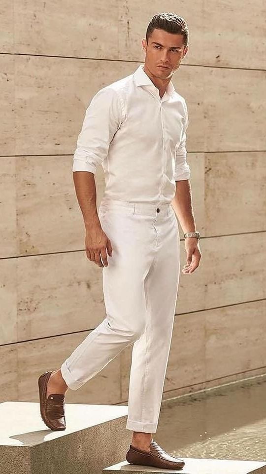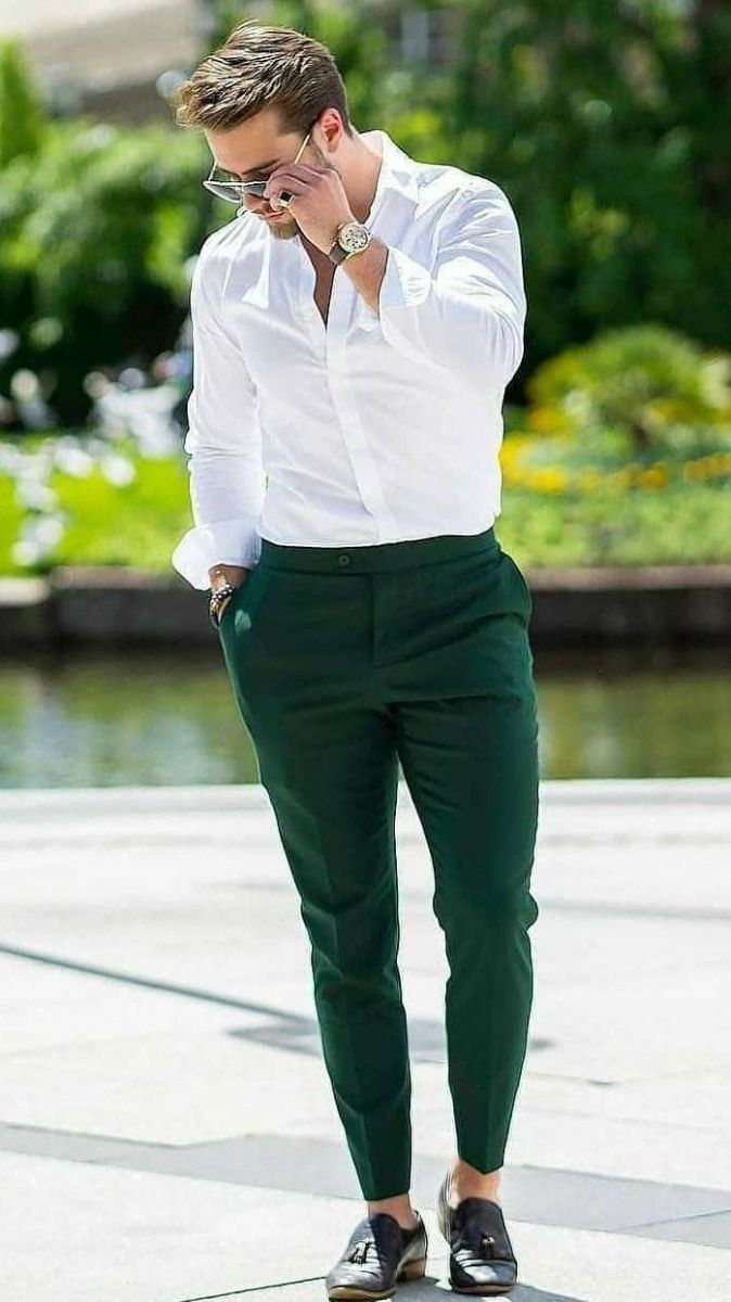 Để có thể phối áo sơ mi trắng theo phong cách thanh lịch, bạn nên chọn những kiểu áo Oxford kết hợp cùng những chiếc quần có gam màu tối như: đen, xám, xanh navy,... Các chàng trai nên sử dụng quần âu và chinos vì chúng sẽ hợp với phong cách lịch sự.