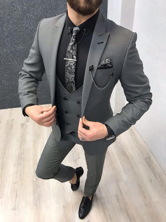 Ngày cưới là ngày trọng đại và bạn luôn cần chuẩn bị cho mình một bộ vest chỉnh chu, đứng đắn và trưởng thành, vậy nên mẫu vest cưới phù hợp nhất trong ngày này đó chính là bộ vest tối màu: Đen, tím than tối.